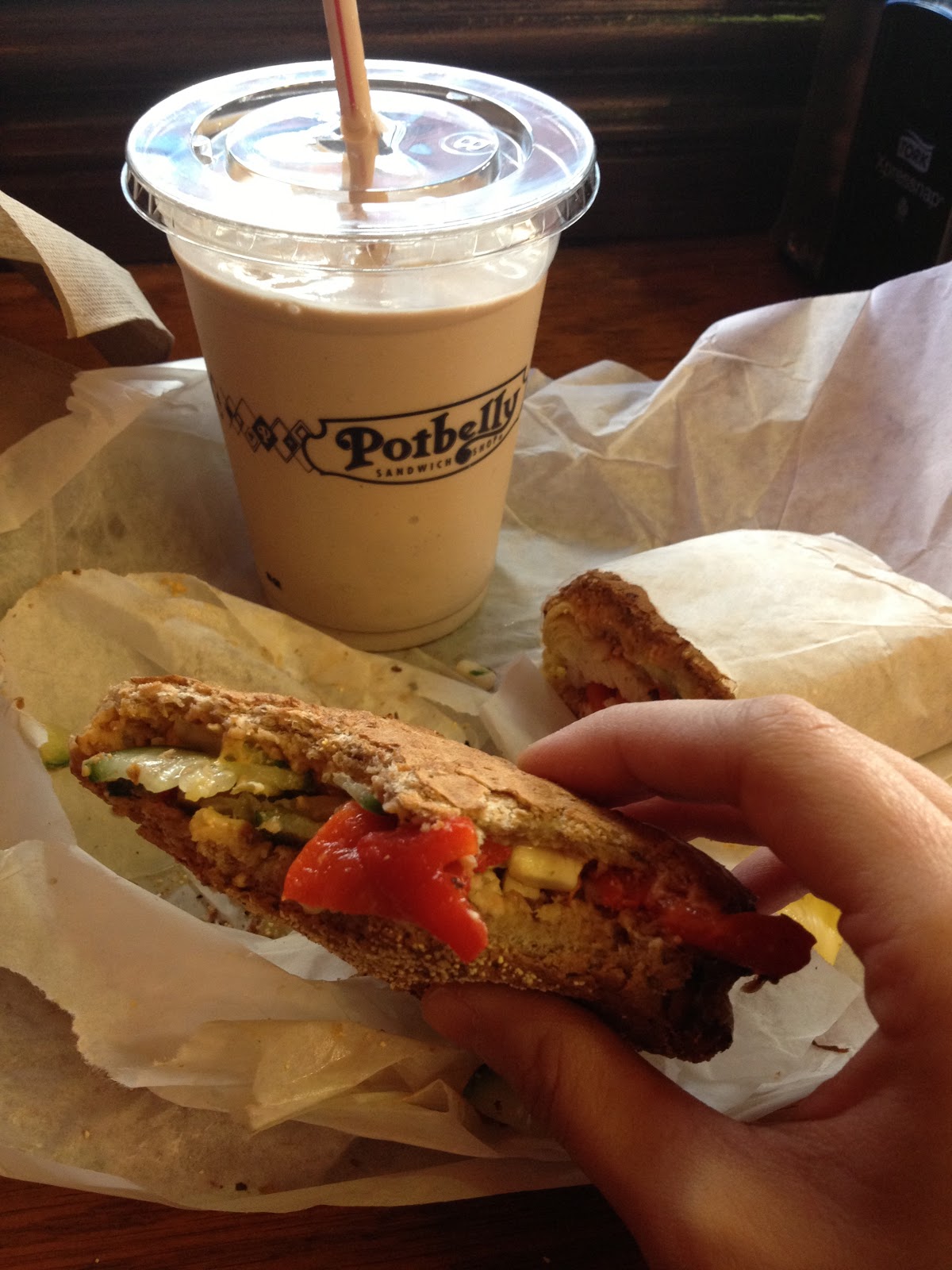 i realized at this point that my stomach was starting to eat itself and fatigue was kicking in so i pulled out yelp to try and find some sort of food truck or other local place to eat and it kept failing me. i gave up and finally just walked to potbelly's because there was no way i was going to eat some crappy pretzel or hot dog from a creeper street vendor. i added this part because i need everyone to know that their chocolate malt was the best malt i've ever had in my whole life and if i lived near a potbelly's i might get one everyday. also, i always think about getting a mediterranean sandwich when i see it places and i finally did it! it was delicious..or perhaps i was just starving? either way i walked out of that place a very full and happy girl.