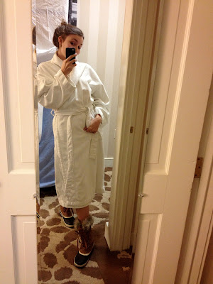 when we got back to the resort everyone ended up doing their own thing for a few hours. some napped, some worked out, and the rest of us hit the steam room, sauna, and hot tub. i felt thrilled to wear that robe and was even more thrilled to wear my boots and look as out of place as possible.